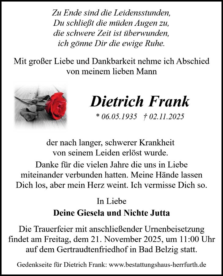 in diesen Tagen fühlen wir mit Ihnen und wünschen Ihnen von Herzen, dass Sie aus den glücklichen Erinnerungen Kraft schöpfen, um positiv in die Zukunft zu gehen. Diese Gedenkseite möge Ihnen dabei helfen, Ihre Trauer zu teilen und das Andenken gemeinsam wachzuhalten.
