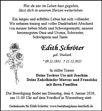 Wir behalten Eure liebe Mutti und Oma, sowie Uroma in liebevoller Erinnerung.