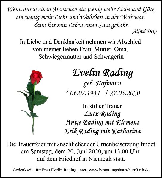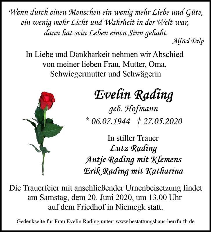 In Gedenken an Frau Rading. Sie war unsere Mathrlehrerin in der Grundschule.