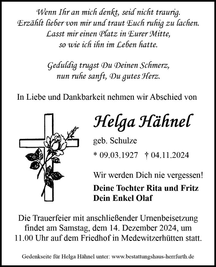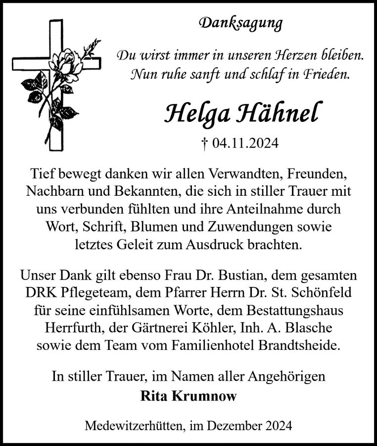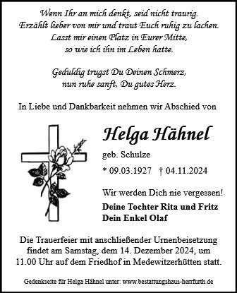 gestorben am 4. November 2024 in Wiesenburg/Mark OT Medewitz