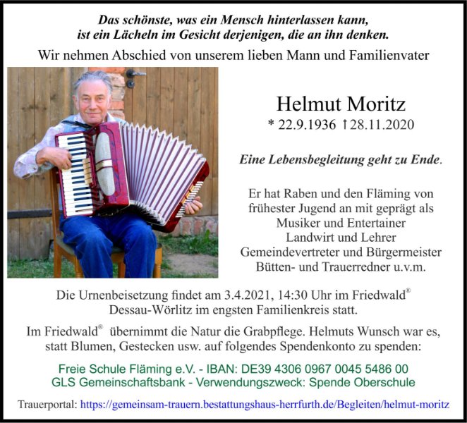 Helmut Moritzgestorben am 28. November 2020