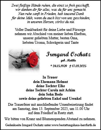 gestorben am 17. August 2025 in Wiesenburg/Mark OT Reetz