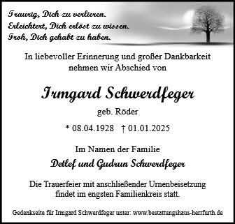 zum Heimgang ihrer lieben Mutter spreche ich ihnen meine aufrichtige Anteilmahme aus. Es ist immer schwer einen lieben Menschen zu verlieren. Ich werde sie in guter Erinnerung behalten.