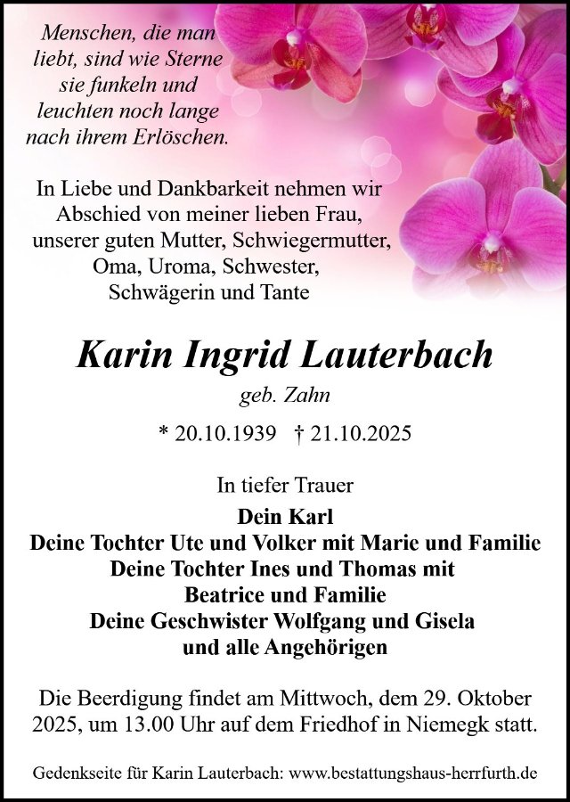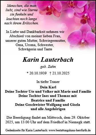 Hiermit möchte ich Ihnen, auch im Namen meines Mannes, unser tiefempfundenes Mitgefühl und Beileid aussprechen. Es tut mir sehr leid, ich mochte Ihre Frau sehr gerne. Hochachtungsvoll Anke Becker nebst Mann.