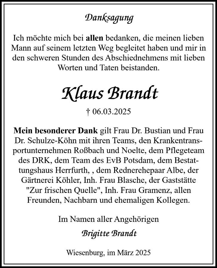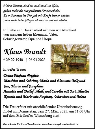 gestorben am 6. März 2025 in Wiesenburg/Mark