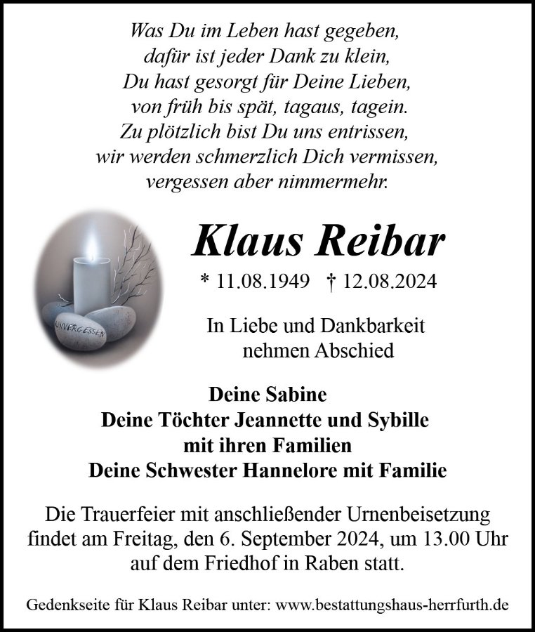 gestorben am 12. August 2024 in Rabenstein Fläming OT Raben