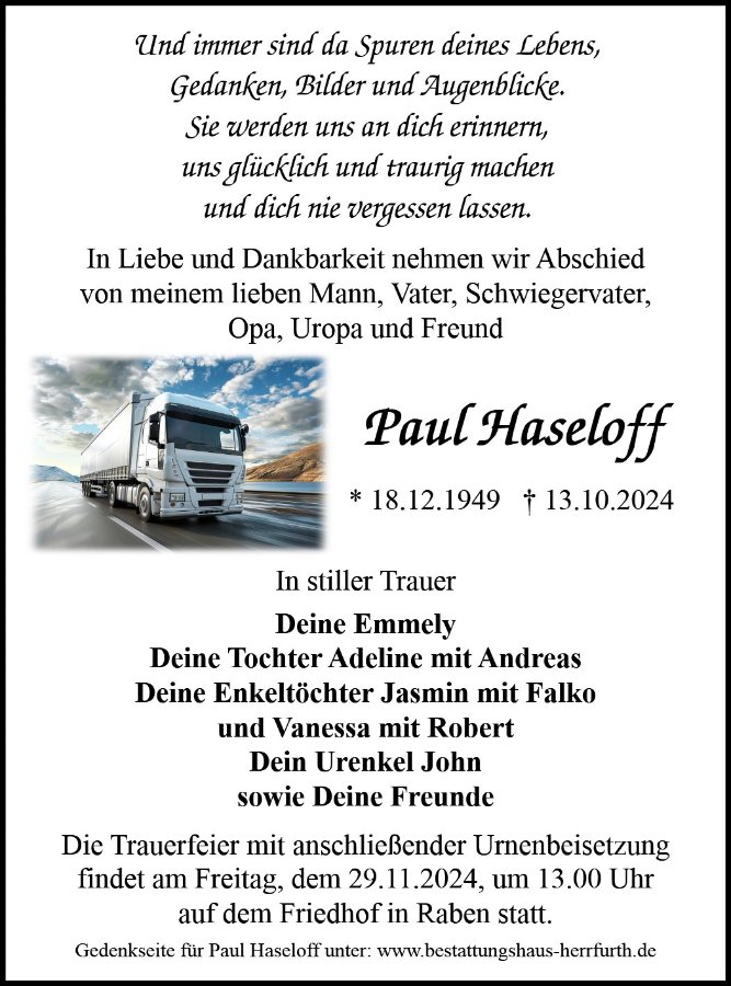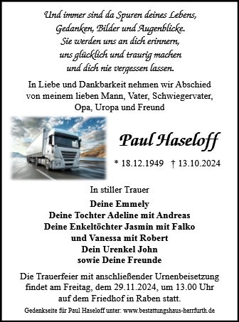Leider kann ich wegen anderer Verpflichtungen Paul nicht auf seinem letzten Wege begleiten.