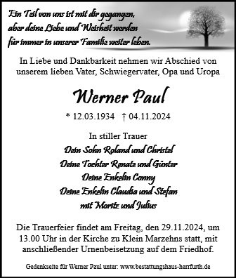 gestorben am 4. November 2024 in Rabenstein/Fläming OT Klein Marzehns