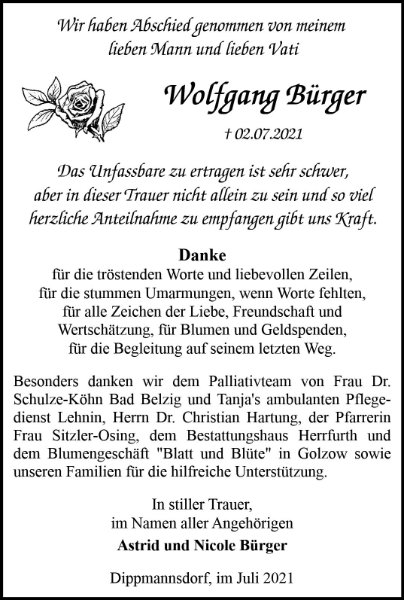 gestorben am 2. Juli 2021 in Bad Belzig OT Dippmannsdorf